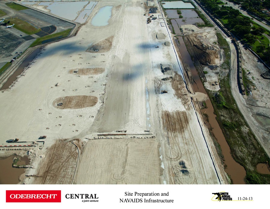 Scope of work: Construction of Site Navaids Infrastructure including F&I over 6.9 million cy of embankment, 26,905 /lf of concrete pipe varying in size from 18” to 96” including 124 new CB/MH/Inlets, installation of 323,500 /sf of MSE wall, and demolition of 297,000 sy.