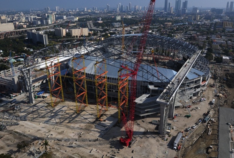 Construction of underground utilities including drainage, water, sanitary sewer,and firelines for the complete stadium and adjacent properties. Roadway reconstruction of approximately 4 miles of new 2-3 lane roadway including earthwork, soil contamination remediation, paving, curbing and walks, striping and signage.